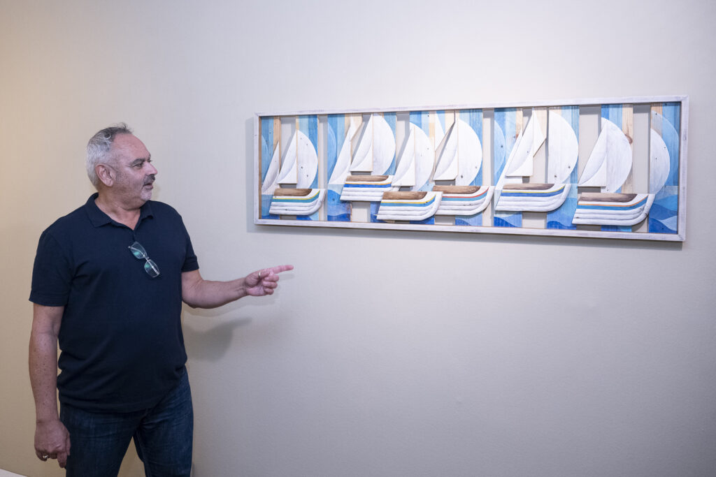 JJ: Hasta ahora hemos llevado la serie “Riscos de colores” por varias salas de diferentes municipios la isla de Gran Canaria. La verdad ha tenido buena acogida en las diferentes expocisiones, ya que suele llamar la atención de los visitantes, tanto la temática como la técnica de las obras, pintura sobre madera reciclada de palé.