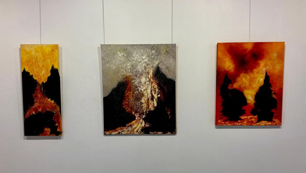 Y es que este último ejercicio demuestra la poética y la composición que Cabrera Rodriguez manifiesta poseer en sus lienzos. Sin hablar de la paleta cromática que, como por ejemplo en la serie de los volcanes, toma una fuerza dicotómica y poderosa, permitiendo resurgir una y otra vez desde el caos y la destrucción, tal como lo hiciera la mitológica ave Fénix.