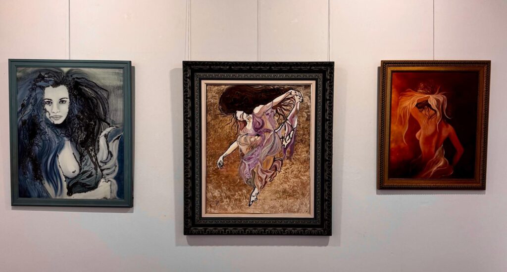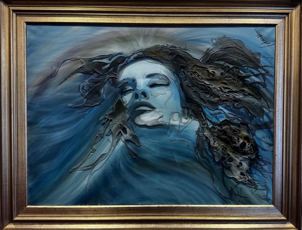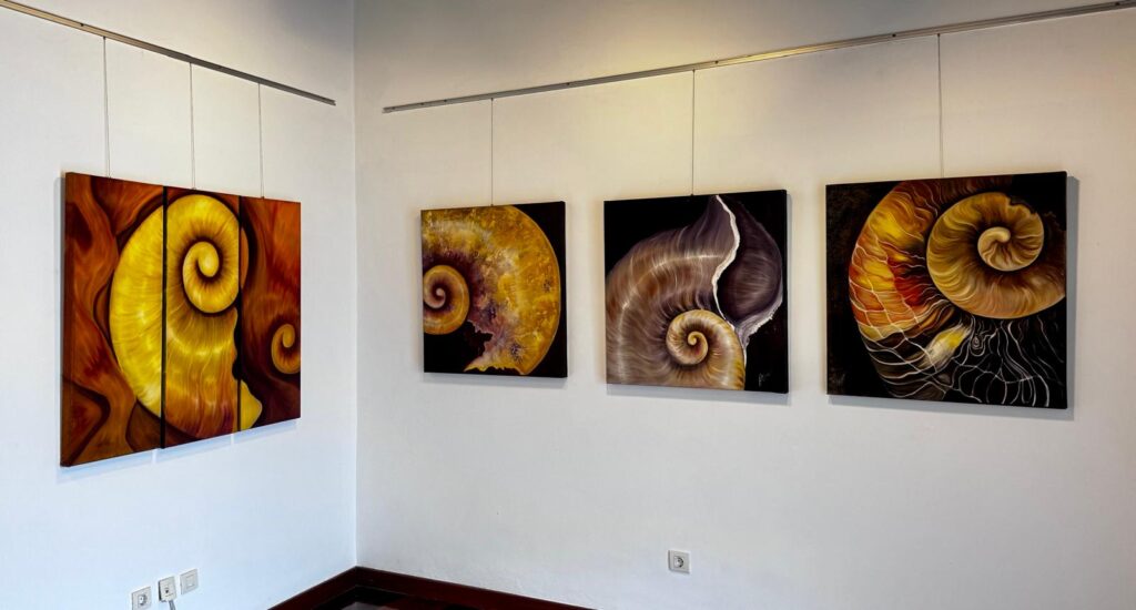 Óleo sobre lienzo, texturas, arenas… Son las principales técnicas seleccionadas para esta muestra. A través de la cuidada selección de óleos sobre lienzo, la muestra propone un viaje emocional por el universo creativo de Fátima Cabrera Rodríguez, donde la figura femenina se funde con la naturaleza más salvaje y simbólica del Archipiélago Canario. No podemos olvidar que, además de pintora, también es escultora. Una pequeña escultura pasa casi desapercibida entre los fósiles que perviven a lo largo y ancho del universo creativo de la artista dentro de esta exposición.