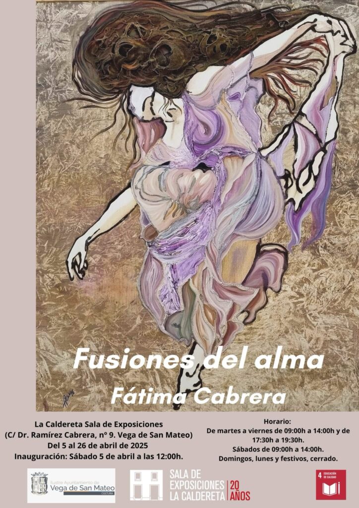 «Fusiones del alma» versa sobre una interesante muestra retrospectiva de Cabrera Rodríguez en La Caldereta, lugar que celebra sus 20 años de funcionamiento ininterrumpido. Obras pertenecientes a diversas series (mujer, fósiles, volcanes…), además de alguna de reciente creación protagonizan el espacio expositivo a lo largo del mes de abril de 2025, tratándose de la segunda exposición individual de esta artista en San Mateo. Y esperando y deseando que sean muchas más las exposiciones de ella que podamos disfrutar.